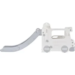 - [4 IN 1 Slide Set] This freestanding slide integrates 4 exciting play sections for kids. The two parts of the slide group have wide step pedals and smooth slides for children to slide down freely. The other part consists of a realistic bus model and a fun basketball hoop. This surprising combination can bring endless play fun to children.
