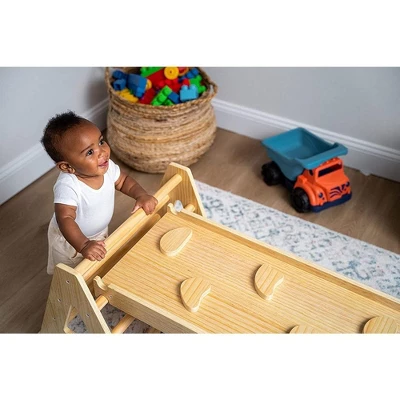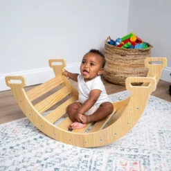 The Avenlur Maple climbing arch is a great way to get your child moving and engaged in physical activity. It is made of durable wood and is CPSIA certified for safety. The arch has three different climbing surfaces, including a triangular climb, a rock climber, and a slide. This encourages your child to use multiple muscle groups as they navigate their way to the top. The arch also provides a great opportunity for motor skill development.