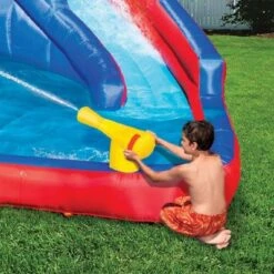 - QUICK& EASY SETUP: Start splashing in no time thanks to the industry-leading air blower motor that inflates the entire park in less than 3 minutes; Easily attaches to any garden hose for quick and convenient accessibility