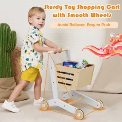 - Perfect Gift for Kids: This compact toy supermarket comes with a movable shopping cart, a scanner, a card swipe machine, a credit card and 5 wooden coins. Rich accessories give toddlers infinite pleasure and learning desire. The pretend play set is a perfect gift for kids more than 3 years old.
