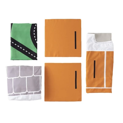 Time to head out to the shop and show off your carpentry and DIY skills with our Garage and Tool Workshop Playhouse Tent and Pretend-Play Tool Set. The roomy 44″L x 44″W x 50″H polyester play tent with sturdy plastic poles is a dream-come-true for kids who want their own space to pretend to fix and build things. Tie-back doors and open windows offer plenty of light and air while they play, and the colorful floor is printed with a road pattern. Its printed roof and colorful green trim will complement a playroom, bedroom or family room.The shelf on the back wall gives young carpenters their own work space, and the colorful fabric cabinets feature doors that remove with hook and loop tape, and reveal plenty of storage space beneath for tools and toys. Tools, jars, and paint cans are printed on the interior of the tent to add even more character.Set includes our 19-Piece Pretend-Play Tool Set for the full play experience. Tools include plastic hammer, saw, screwdriver, wrench, pliers, battery-operated drill (3 AA batteries required, not included), plastic hardware, adjustable tool belt, and plastic hard hat.Perfect gift for kids who love pretend play and role-play. Adult assembly required. Spot clean tent.