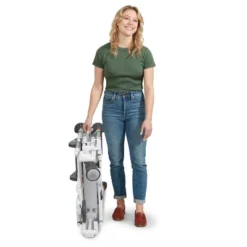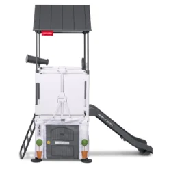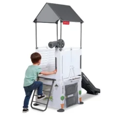 Radio Flyer’s Play & Fold Away Modern Farmhouse is a fun new playhouse that encourages active imaginative play! The unique folding mechanism allows this to be easily stored when not in use and the carrying handle makes this the most convenient climber for your family! Kids can create their own adventures on the sturdy platform with a fun telescope and steering wheel. The telescope swivels and pivots while the steering wheel rotates freely. The climbing ladder allows easy entry, and the built-in slide adds to the fun! Beneath the stable platform is a secret play space that features two doors and mesh windows. The fabric canopy is removable, and the canopy poles retract into the frame when not in use. Maximum weight capacity of 150 lbs. Recommended for ages 2 – 5 years