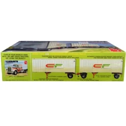 Brand new 1/25 scale plastic model kits of Trailmobile Double Header Tandem Van Trailers (Skill 3) 1/25 plastic model kits by AMT.Brand new box.Rubber tubing.Chrome plated parts.Operating rear doors.Adjustable landing gear.Vintage style packaging.Authentic converter dolly.Truck Tractor not included.Metal axles and black vinyl tires.Each trailer is over 12.5 inches long.More than 230 authentically detailed parts.Paint and cement required (not included).Twelve hollow vinyl 10.00-20 name-brand tires.Parts molded in white, unless otherwise indicated.Both vans feature operating “TODCO” overhead sliding doors.Trailers may be coupled singly, or in pairs, using converter dolly included.Authentic consolidated freight lines decals for trailers and your choice of truck.Authentic converter dolly with fifth wheel: couples vans together in “train” configuration.Detailed trailer suspension units: dual wheels, big hollow vinyl truck tires, air brakes and vinyl air hoses.