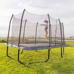Welcome to the next chapter of the Skywalker Trampolines’ Epic Series now with a 15’ x 9’ Rectangle model. Savor sun-soaked days outside while the kids play safely on a trampoline equipped with our patented no-gap enclosure net. This trampoline sports an epic look with black powder-coated steel legs trimmed with a black & gray two-toned spring pad to better blend with any outdoor aesthetic. Featuring one of the best bounces around, this rectangle trampoline is designed to support kids as they develop athletic skills in activities such as gymnastics or tumbling.