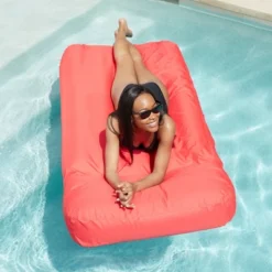 - FABRIC COVER: Inflatable float features a soft, cool, comfortable fabric top creating the perfect surface to lounge in the water on; Creates a “bean-bag” feel on the water