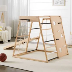 Our Stay-at-Home Play-at-Home Activity Gym is the perfect alternative to the playground. Comes complete with slide that reverses to climbing wall, swing, rope climber, monkey bars, ladder, and basketball hoop (basketball not included) Crafted of solid, sturdy beach wood, this beautiful gym will help encourage physical activity, balance and hours of fun. Your kids will be all over it!