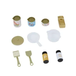 - INCLUDED: Kitchen set includes a pot with lid, pan, two spatulas, two spice shakers, three cans, plus a cordless phone are included in this complete set.