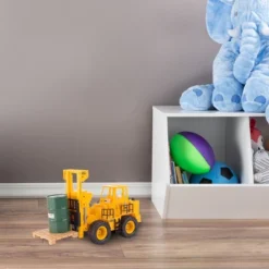 Spark your child’s imagination with this Toy Time 1:24 Scale Remote Control Forklift. Designed to drive on semi-smooth surfaces such as sand and carpet, this remote control forklift is easy to control with the included wireless remote. Working lights and sounds add a realistic touch to this RC vehicle to create the feeling of a real construction site. The included plastic drum and removable pallet add to the play opportunities while improving hand-eye coordination and motor skills.