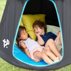 Perfect for any backyard this set has a relatively small footprint but lots of play value. Features a high quality mesh den door and lookout window along with a fun up-and-over climbing ladder with curved rungs and handrails. ‘Intelligent’ adjustable feet provide stability on uneven ground.
